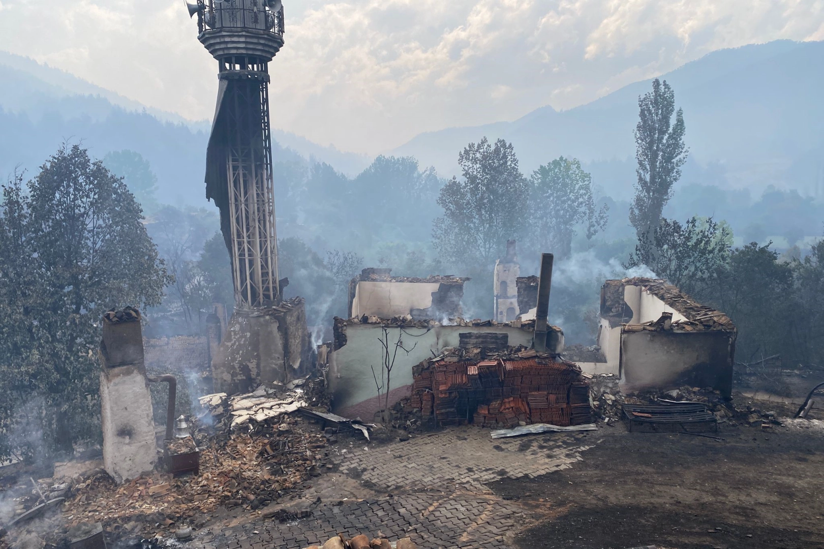Gölpazarı'na bağlı Köprücek Köyünün yüzde 90'ı tamamen kül olurken, köy camiinin de için için yandığı görüldü. Köprücek köyü İsmail Gücen İHA muhabirine yaptığı açıklamada, "Bilinmeyen bir nedenden dolayı Taraklı'dna çıkan yangın ilçemize kadar geldi. Bizim köyümüze geldi. Biz vatandaşlarımızı ve hayvanlarımızı hemen boşalttık. Müdahale ettik ve köylümüzü ilk gün kurtardık. 35 kilometrelik bir alanda yangın etkili oldu. 23 evden 20'si yanmış durumda. Sadece bizim köy değil Sürmeli ve Urgancılar'da bu durumda. Allah bize yardım etti. Yağmur yağdı ve alevler sönmüş durumda" dedi.