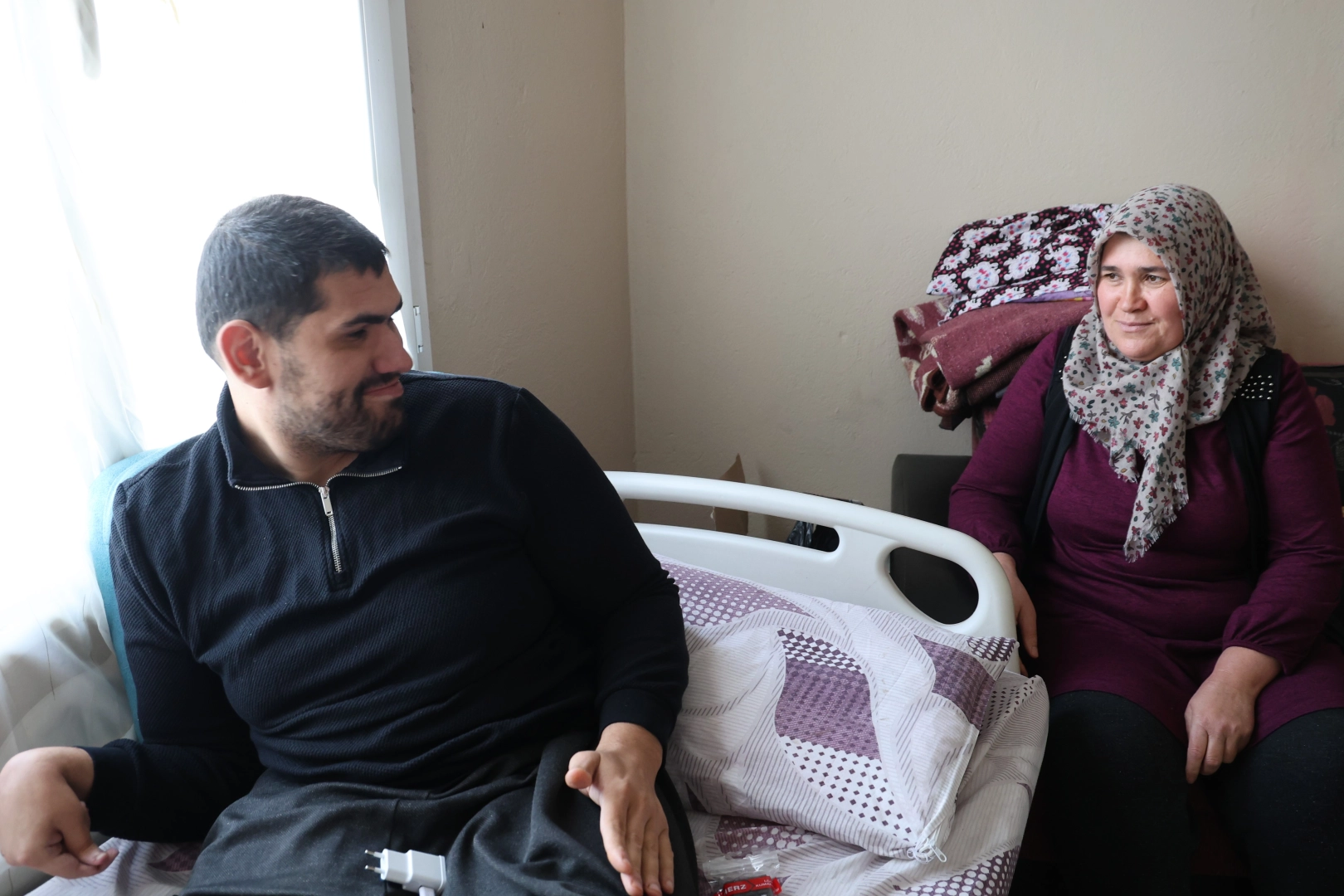 Adana'da 30 yaşındaki Okan 6 yaşındayken bahçede oynadığı sırada boynuna batan bir tel nedeniyle bedensel ve zihinsel engelli hale geldi.