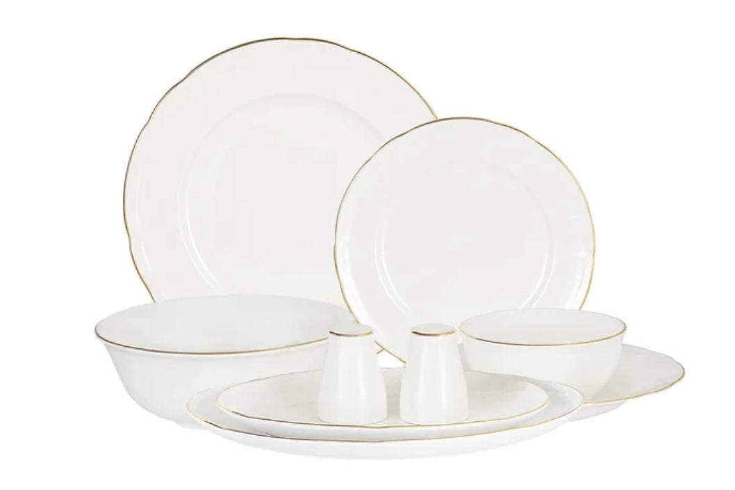12 adet kahvaltı/ekmek tabağı12 adet pasta/tatlı tabağı12 adet fincan ve tabağı2-4 adet servis tabağı1-2 adet salata kâsesi1 adet çorba servis kasesi1 adet soslukÇeşitli ebatlarda 2-4 adet servis tabağı1 set salata servis kaşığı-çatalı