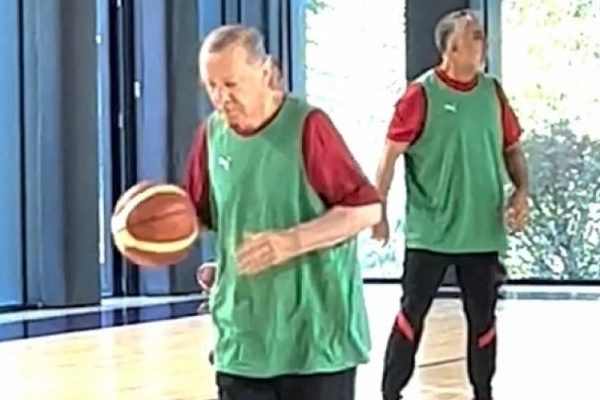 Görüntüler, Cumhurbaşkanı Erdoğan'ın kondisyon bisikletinde ısınmasıyla başlıyor. Cumhurbaşkanlığı Sarayı'ndaki maçlarda Erdoğan, Gençlik ve Spor Bakanı Osman Aşkın Bak, Çalışma ve Sosyal Güvenlik Bakanı Vedat Işıkhan, MİT Başkanı İbrahim Kalın, Cumhurbaşkanlığı İletişim Başkanı Fahrettin Altun, eski bakanlar Mevlüt Çavuşoğlu, Mehmet Muharrem Kasapoğlu ve Mustafa Varank, AK Parti İzmir Milletvekili Alpay Özalan, Gençlik ve Spor Bakan Yardımcısı Hamza Yerlikaya ile Türkiye Basketbol Federasyonu (TBF) Başkan Vekili Ömer Onan'ın yer aldığı görülüyor.