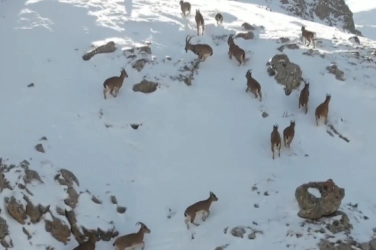 Yaban hayatının zengin olduğu Erzincan'da nesli tükenmekte olan ve koruma altında bulunan dağ keçileri karlı arazide yiyecek ararken drone ile kaydedildi. Yükseklerde yaşadığı için nadir görülen dağ keçileri doğaseverleri mest etti. Yakından görüntülenen sürü halindeki dağ keçileri belgesel niteliğinde görüntüler ortaya çıkardı. Karlı arazide kendi doğasında görüntülenen dağ keçileri doğaseverlerin beğenisine sunuldu.