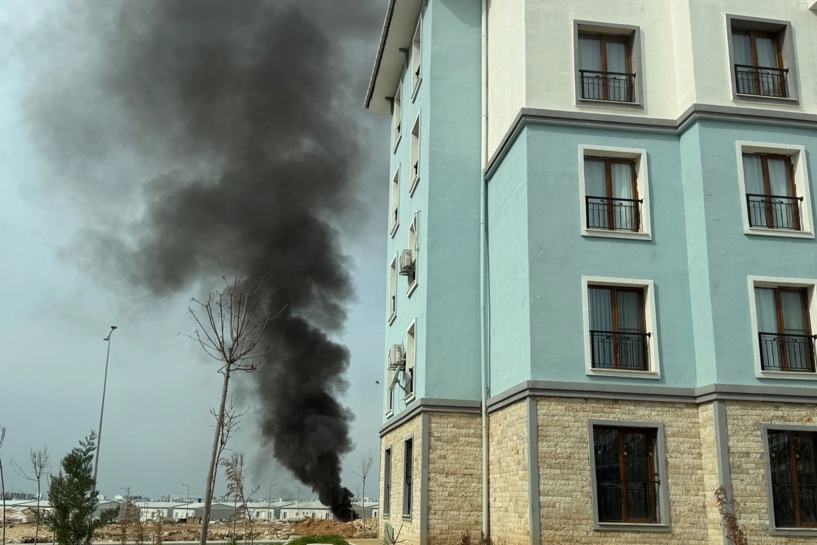 Adıyaman'da Örenli Deprem Konutları çevresinde yakılan ateş, yükselen yoğun siyah duman vatandaşlarda kısa süreli paniğe neden oldu.