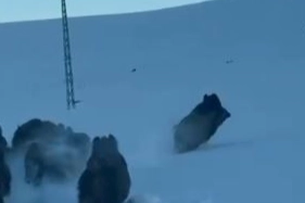 Merkeze bağlı Akyaka köyü yolunda sabah saatlerinde otomobiliyle seyreden Vedat Özgür'ün önüne aniden bir domuz sürüsü çıktı. Yol boyunca ilerleyen domuzlar bir süre aracın önünde koşarak ilerledi. Sürücü Özgür ise hayvanlara zarar vermemek için aracın hızını düşürerek ilerledi. Bir süre sonra yol kenarındaki karla kaplı alana yönelen domuzlar gözden kayboldu. Yaşanan ilginç anlar sürücünün cep telefonu kamerasıyla kayıt altına alındı.