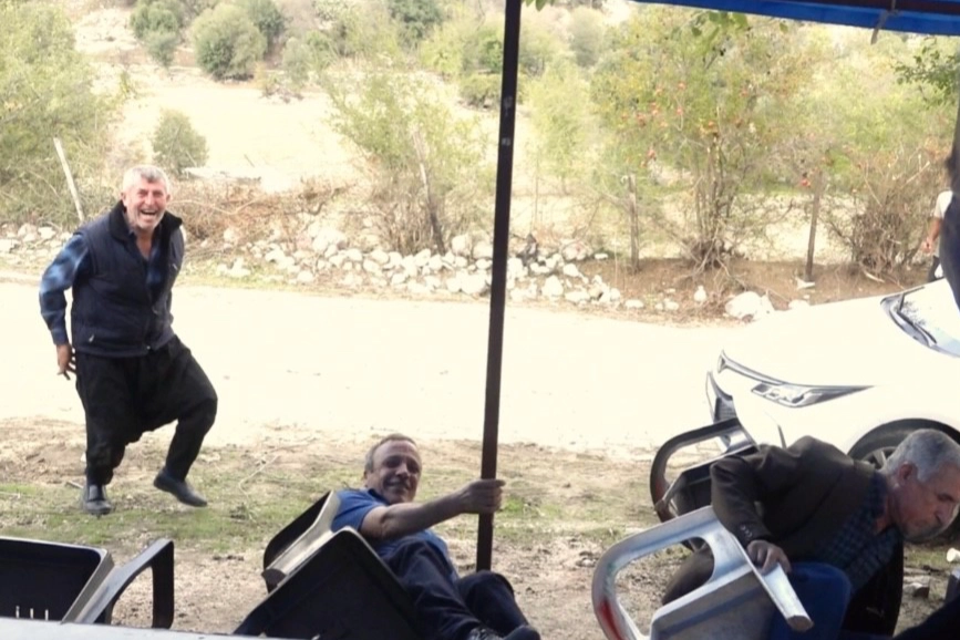 Olay, Sumbas ilçesi Alibeyli köyünde yapılan bir köy düğününde meydana geldi. Cep telefonu kamerasıyla kaydedilen görüntülerde, eğlencenin sürdüğü sırada davulcuya para uzatan bir kişinin oturmak isterken geriye doğru devrildiği, yanındaki iki arkadaşının da sandalyeleriyle birlikte yere düştüğü görülüyor. O anlar kısa sürede sosyal medyada paylaşılırken, davetlilerin kahkahaları arasında düşen üç kişinin yara almadan ayağa kalktığı öğrenildi.