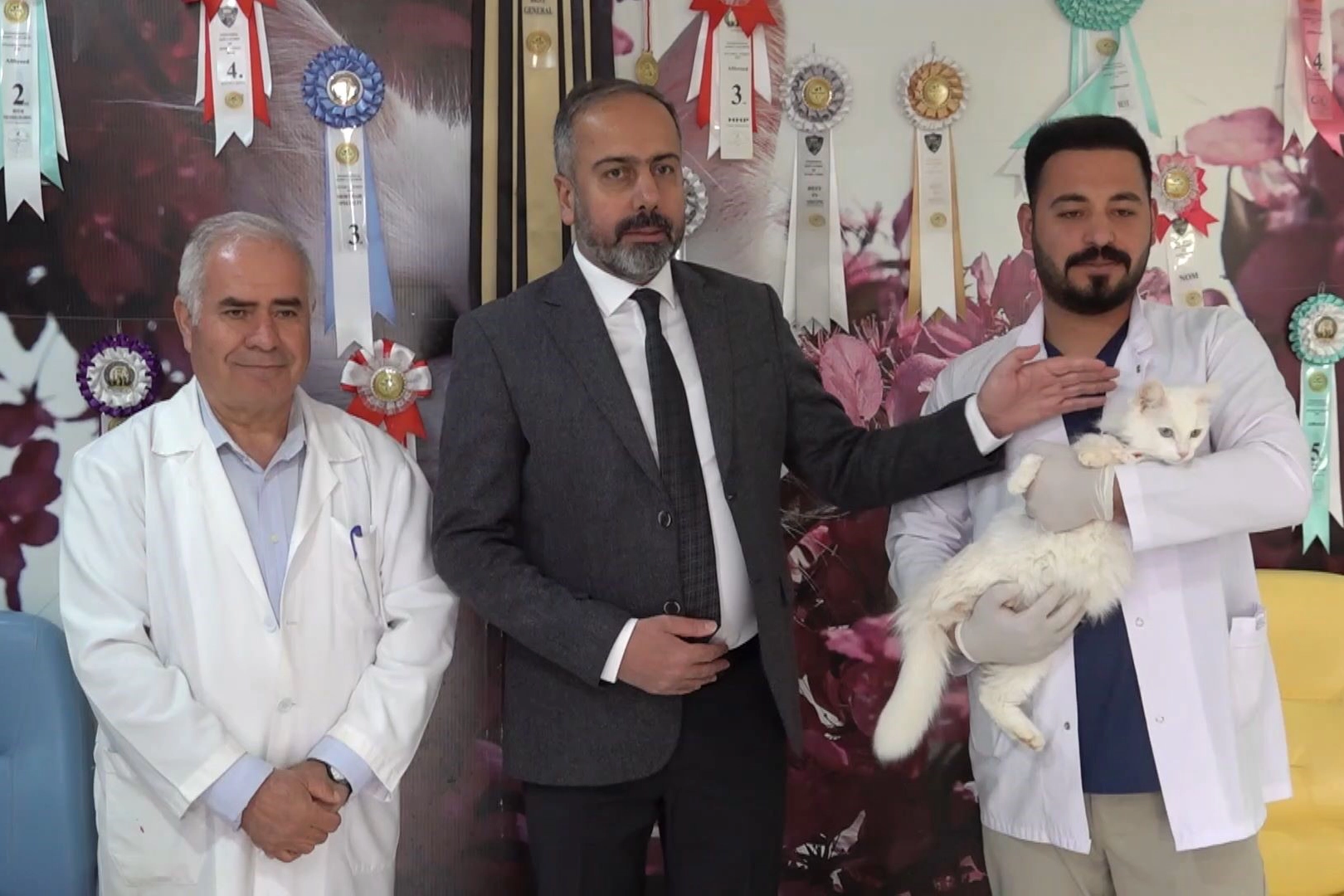 Konuyla ilgili açıklamada bulunan Van YYÜ Rektörü Prof. Dr. Hamdullah Şevli, dünyaca ünlü Van kedilerinin neslinin devam ettirilmesi için Van Kedisi Uygulama ve Araştırma Merkezi bünyesinde Van Kedi Villası'nın olduğunu ifade ederek, "Van kedisi yeni doğduğunda ipeksi beyaz tüyleri, baş kısımlarında böyle bir siyah benek olur. O siyah benekler bu kedilerimizde mevcut. İnşallah bu kedilerimiz iki buçuk aylık olduğunda bir gözü turkuaz mavisi, bir gözü kehribar sarısı oluyor. Ama bazı Van kedilerimizin iki gözü turkuaz mavisi veya iki gözü kehribar sarısı da olabiliyor" dedi.