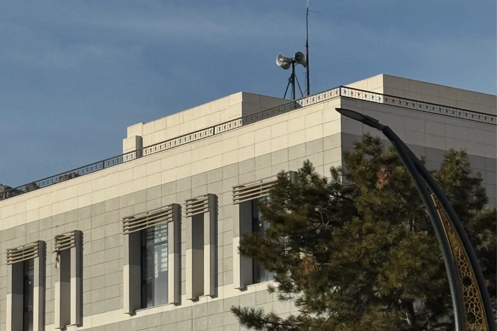 Diyarbakır'ın Çermik ilçesinde vatandaşların ezan sesinin mahalleye ulaşmadığı şikayeti üzerine belediye binasına hoparlörler yerleştirildi.