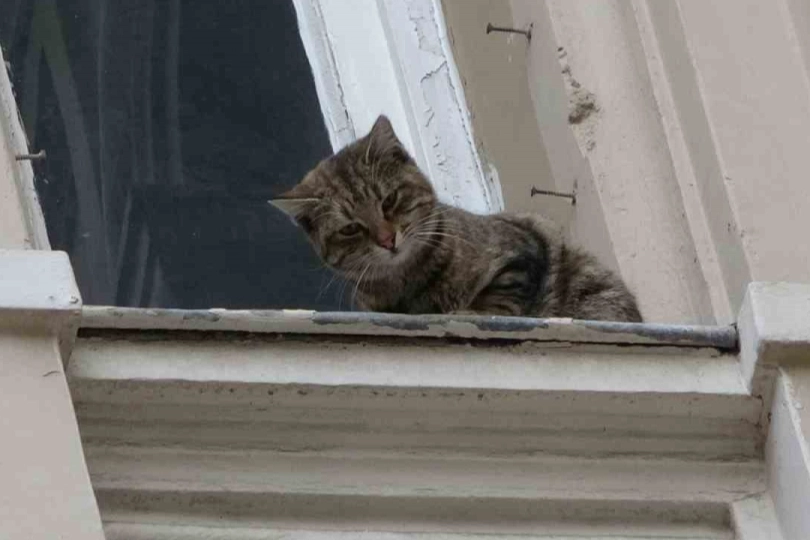 İstiklal Caddesi’nde yer alan metruk haldeki bir binanın 4. katında mahsur kalan kediyi gören vatandaşlar meraklı gözlerle kediyi seyrederken durumu itfaiye ekiplerine ihbar etti. Aşağıya inemeyen ve korku halinde panik yapan kediyi kurtarmak için olay yerine gelen itfaiye ekipleri, itfaiye aracının merdiveniyle kedinin bulunduğu kata çıktı.