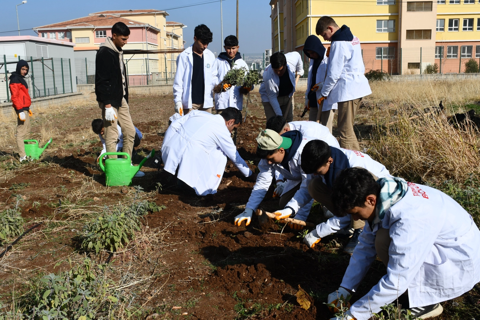 Şanlıurfa'nın Siverek ilçesindeki lise öğrencileri, okul bahçesinde kurulan özel uygulama alanında hem tarımı pratik olarak öğreniyor hem de bölgenin geleneksel ürünlerine alternatif olarak tıbbi ve aromatik bitkiler yetiştiriyor.