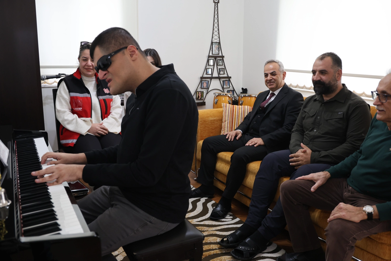 Elazığ'da yaşayan Yaşar ve Şenay Dabakoğlu çiftinin görme engelli oğulları Mehmet Dabakoğlu, ailesinin desteğiyle 13 yaşından itibaren müzik alanında kendisini geliştirdi. Gaziantep Üniversitesi Türk Musikisi Konservatuarı'nı kazanan Dabakoğlu, özel öğrenci statüsüyle Fırat Üniversitesi Devlet Konservatuarı'na geçerek eğitimine burada devam etti. Geçtiğimiz yıl fakülte üçüncüsü olarak büyük bir başarıya imza atan Dabakoğlu, ney, piyano, org ve çeşitli ritim sazlarını ustalıkla çalıyor. Aile ve Sosyal Hizmetler İl Müdürü Ömer Faruk Ergün ve beraberindeki heyet, 3 Aralık Dünya Engelliler Günü ile Mehmet'in 10 Aralık'taki doğum günü dolayısıyla Dabakoğlu ailesini ziyaret etti. Ziyarette Mehmet'in ney ve piyano başta olmak üzere çeşitli enstrümanlarla verdiği mini konserin ardından doğum günü pastası kesildi.