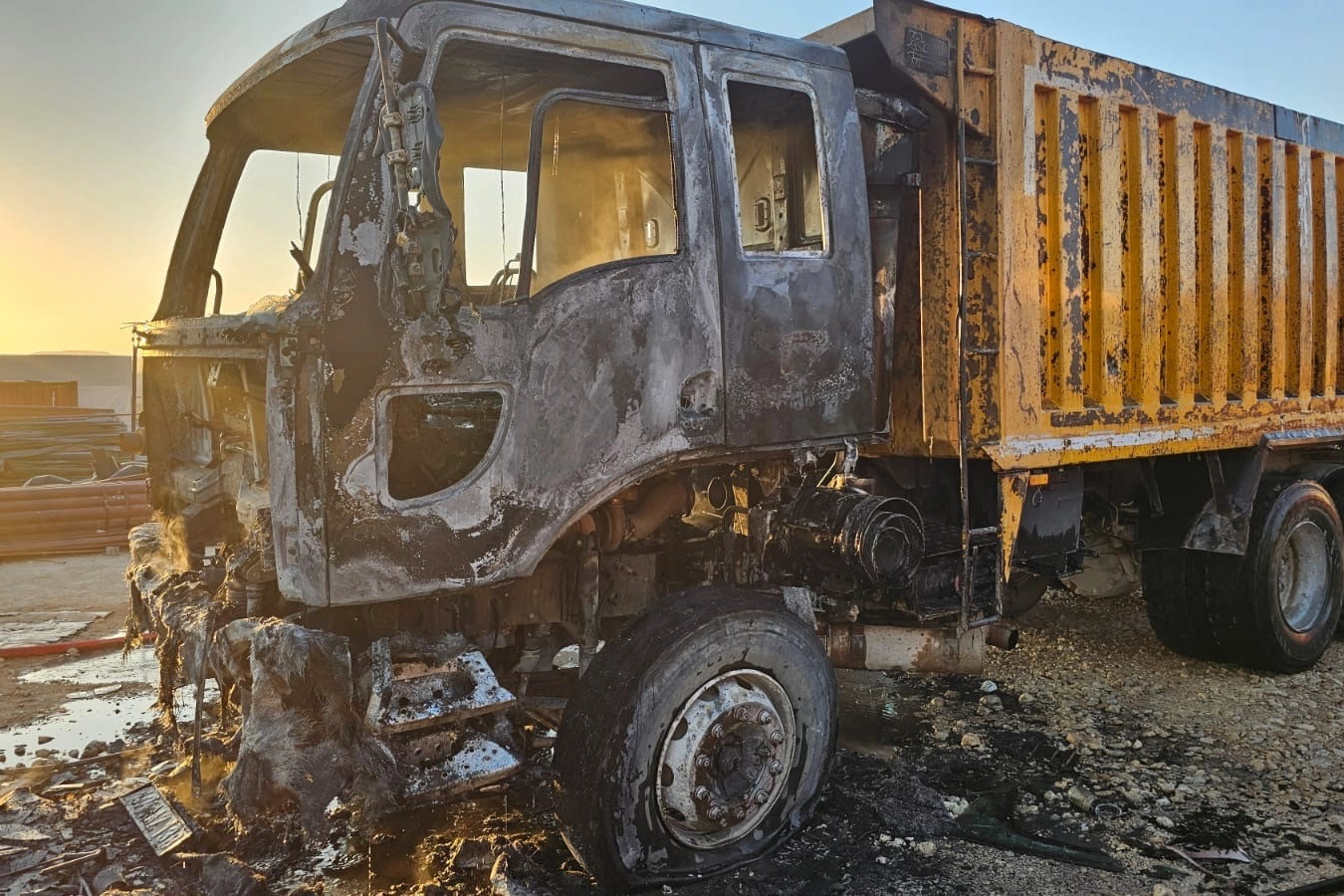 Hafriyat kamyonu yangında kül oldu