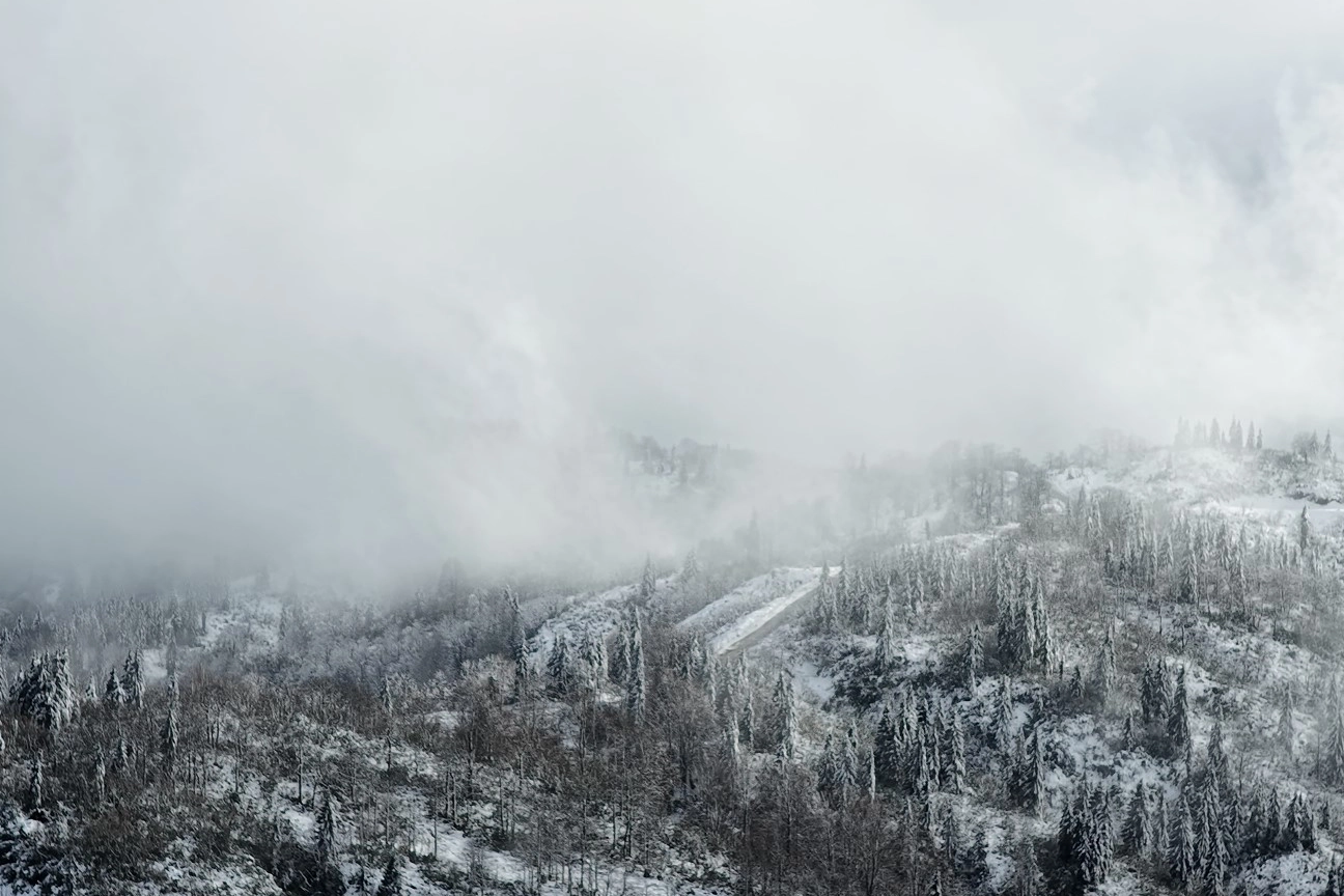 Rize'nin şehir merkezine en yakın yaylası olan Handüzü Yaylası'nda karın güzelliği havadan görüntülendi.