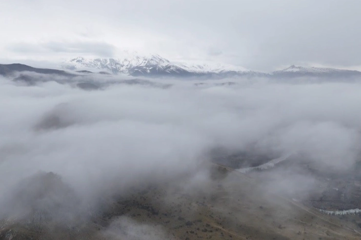 Erzincan’da Munzur Dağları yoğun sisle kaplanırken, sararan doğayla bütünleşen manzara havadan görüntülendi ve izleyenlere büyüleyici bir görsel şölen sundu.