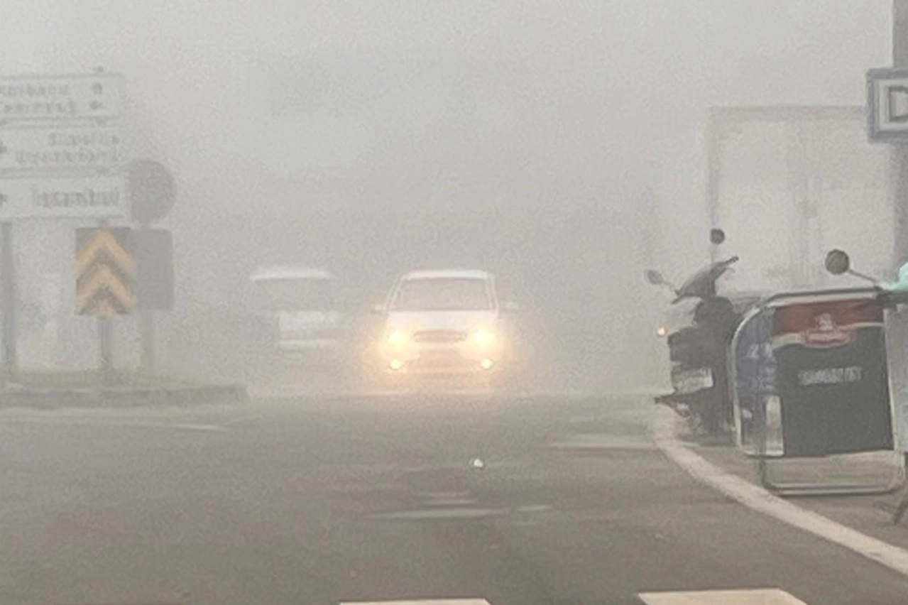 Tekirdağ'ın Hayrabolu ilçesinde etkili olan yoğun sis, ilçe genelinde görüş mesafesini yer yer 10 metreye kadar düşürdü.