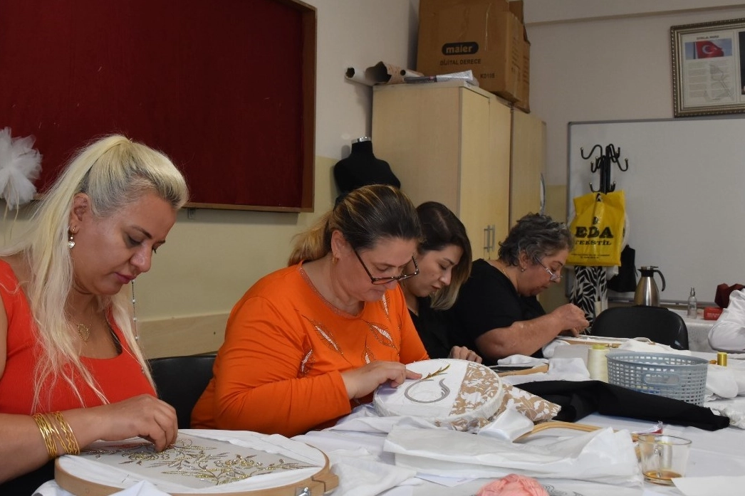 Gaziantep'te Şahinbey Belediyesi tarafından açılan el sanatları kursunda hem geleneksel el sanatları yaşatılıyor hem de kadınların el becerilerini geliştirerek bu alanda ekonomik kazanç elde etmelerinin önü açılıyor.