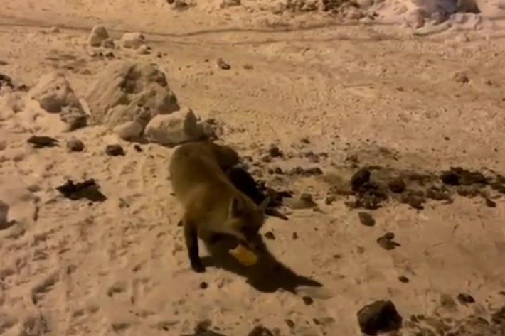 Kılıç, tarafından atılan ekmeği alan tilki daha sonra bölgeden ayrıldı. O anlar cep telefonu kamerasıyla kaydedildi.