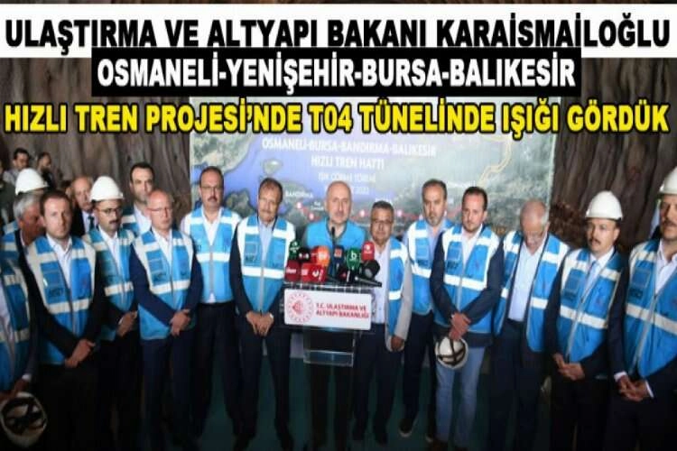 T04 tünelinin kazı çalışmalarında; 612 bin metreküplük toprak hareketinin gerçekleştirildiğini aktaran Karaismailoğlu, “140 bin metre zemin iyileştirmesini tamamladık. Diğer tünellerimizdeki çalışmalarımızı da kısa zaman içerisinde peş peşe tamamlayacağız. Altyapıya yönelik çalışmalarımız sürerken, üstyapıyla ilgili hazırlıklarımızı da sürdürüyoruz. Çalışmalarımızı hız kesmeden 7/24 sürdürerek, 2,5 yıl içerisinde tamamlayıp, halkımızın hizmetine hızlı trenimizi açacağız. Yıllık 30 milyon yolcu ve 59 milyon ton yük taşıyabilecek olan hızlı tren projemiz, yapım sırasında ve işletmeye alındığında; bölgemiz ve ülkemiz için refah, istihdam, ekonomik kalkınma sağlanacak” dedi.