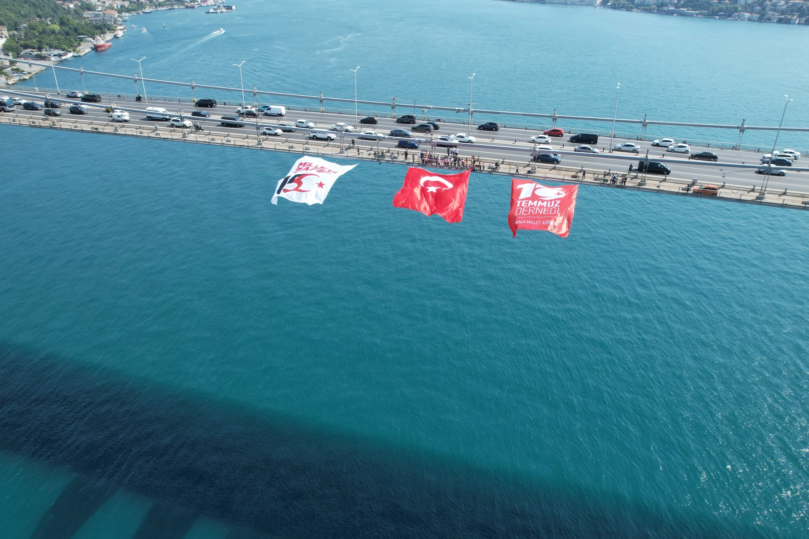 İstanbul'da 15 Temmuz Demokrasi ve Milli Birlik Günü nedeniyle köprülere dev Türk bayrakları asıldı. 15 Temmuz Şehitler Köprüsü'ne asılan dev Türk bayrağı havadan görüntülendi.