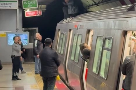 İstanbul'da Yenikapı-Seyrantepe-Hacıosman Metro Hattı'nda ilginç anlar yaşandı. Bir vatandaş bilinmeyen bir nedenle durakta bekleyen metronun üzerine çıktı. Güvenlik görevlisi telsizden anons geçerek ekip çağırırken, yolcuların hayretle izlediği şahıs bir süre sonra metronun üzerinden inip koşarak kaçmaya başladı. Yaşanan ilginç anlar cep telefonu kamerasına yansıdı.