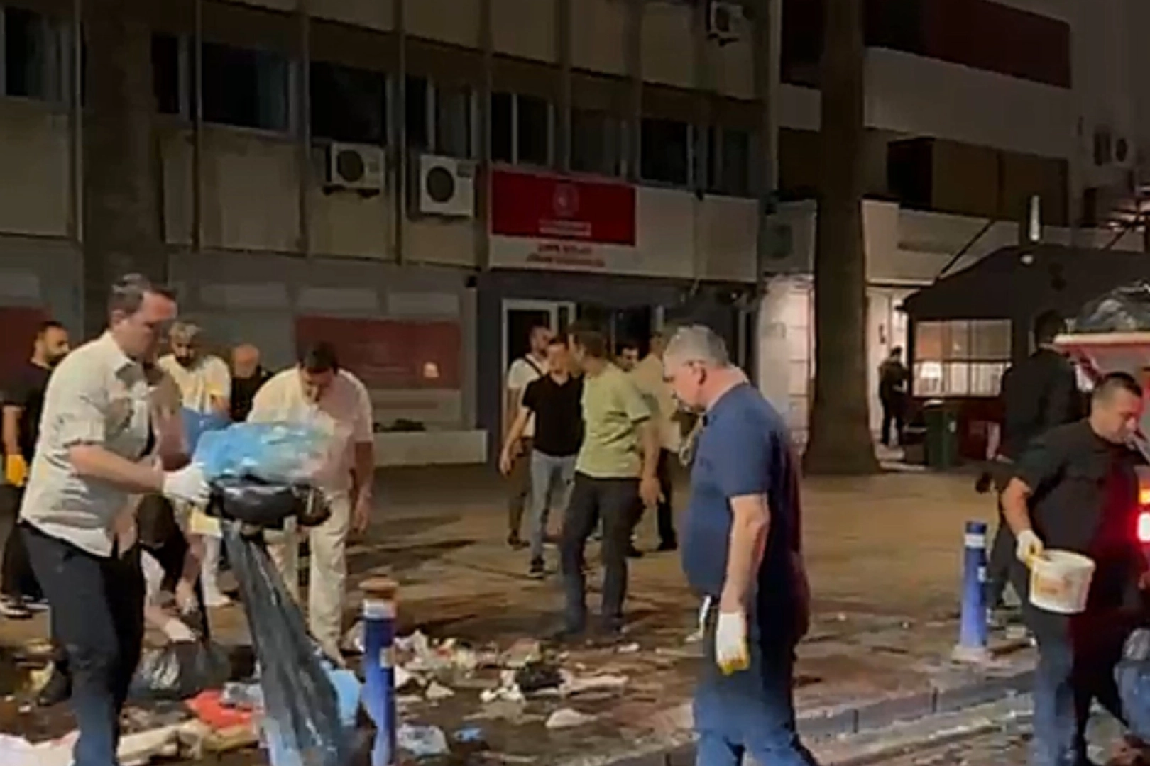 Başkan Tugay gece vakti sahaya indi İzmir Büyükşehir Belediye Başkanı Cemil Tugay, gece vakti Alsancak Kordon'da sahaya indi. Başkan Tugay, eldivenleri giyip esnafla birlikte çöp topladı. Çöp poşetlerini kamyona yükleyen Başkan Tugay, bir süre sonra yanlarına gelen DİSK Genel İş 2 No'lu Şube Başkanı Ercan Gül ile tartıştı. Tugay, "Buraya ne yapmaya geldiniz? Siz bu çöpün toplanmasına engel olamazsın. Böyle bir hakkınız yok. Israr etmeyin. Bu çöp buradan kalkacak. Bu çöp buradayken bu kent sağlıklı bir yaşam süremez. Siz buraya kavga etmeye mi geldiniz? Çöpü burada tutarak mı ekmeğinizi koruyorsunuz? Grev yapan insan evine gider. Buraya karışamazsınız" dedi. DİSK Genel İş Sendikası 2 No'lu Şube Başkanı Ercan Gül de, "Biz ekmeğimizin peşindeyiz. Başka bir amacımız yok" ifadelerini kullandı. Tartışmaya şahit olan esnaf da sendika yetkililerine tepki göstererek, "Biz mekan sahibiyiz, burada çöp istemiyoruz" dedi. Başkan Tugay, sendika görevlilerine "Sizin yapacağınız işi ben yapıyorum" diyerek, vatandaşlarla birlikte çöp toplamaya devam etti.