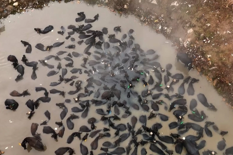 Güroymak ilçesine bağlı Budaklı köyünde, kış aylarının vazgeçilmezi haline gelen manda temizliği yine ilgi çekici görüntülere sahne oldu. Temizlenmeleri için kaplıcaya götürülen mandaların sıcak sulardaki keyfi, akademisyen ve fotoğraf sanatçısı Veysel Akşahin tarafından dronla görüntülendi.