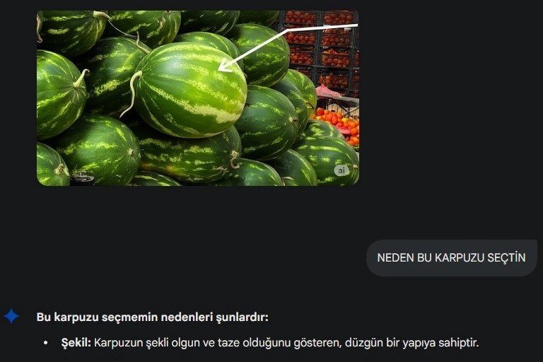 Her geçen gün kullanımı artan yapay zeka, pazarda karpuz seçiminde de tavsiyelerde bulunuyor.