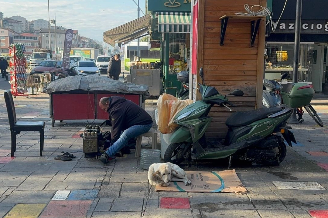 Zonguldak’ın Alaplı ilçesinde ayakkabı boyacılığı yapan Hüseyin Öztürk, kazancının yarısını 10 yıldır baktığı engelli köpeği "Pamuk" için harcıyor.