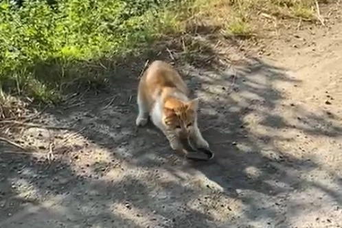 Olay, Kürtün ilçesine bağlı Demirciler köyünde meydana geldi. Arif Şen tarafından kaydedilen görüntülerde, bir kedinin doğada gördüğü yılanı kısa sürede etkisiz hale getirip avladığı anlar yer aldı. Kedinin çevik hamlelerle yılanı yakalayıp taşıdığı görüntüler sosyal medyada ilgi görürken, doğanın içindeki bu anlar izleyenlerin dikkatini çekti.
