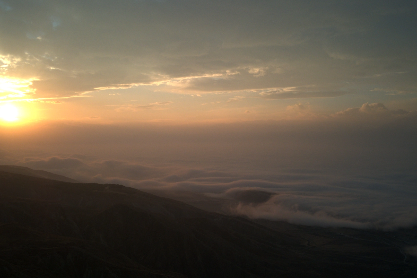 Erzincan’da gün doğumuyla birlikte ovayı kaplayan yoğun sis, Keşiş Dağı’nın zirvesinden bakıldığında adeta kartpostallık bir manzara oluşturdu.