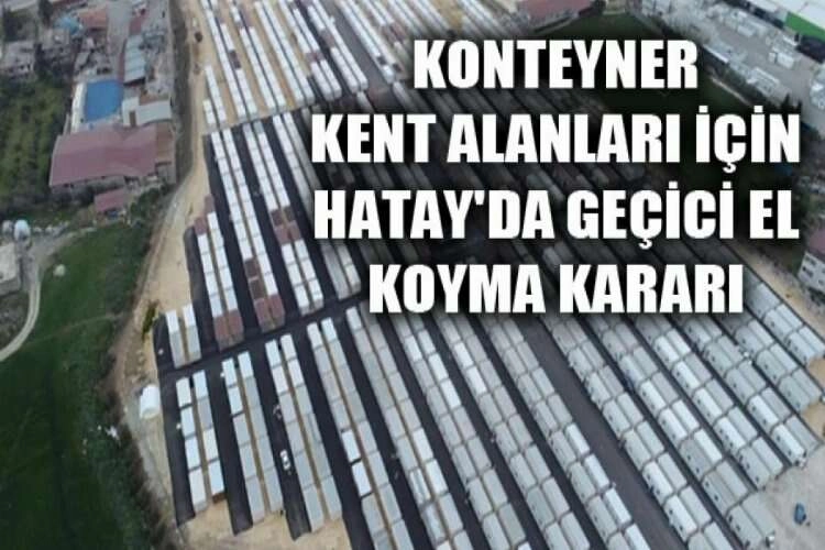 Geçici el koyma kararıHatay Valiliği'nin resmi internet sitesindeki açıklamada depremzedelerin barınma ihtiyaçlarının karşılanması için konteyner kent alanları oluşturulacağı belirtildi.