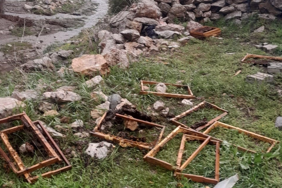 Kayseri’nin Develi ilçesinde ayılar, yaylada bulunan arı kovanlarına saldırdı.