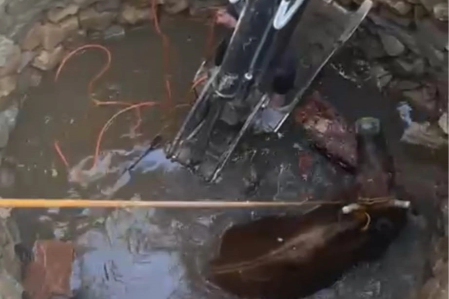 Bekirhan beldesinde arazide otlanan inek, yaklaşık 7 metre derinliğindeki kuyuya düştü. İneğin düştüğünü gören sahibi, çevrede bulunan vatandaşları arayarak yardım istedi.