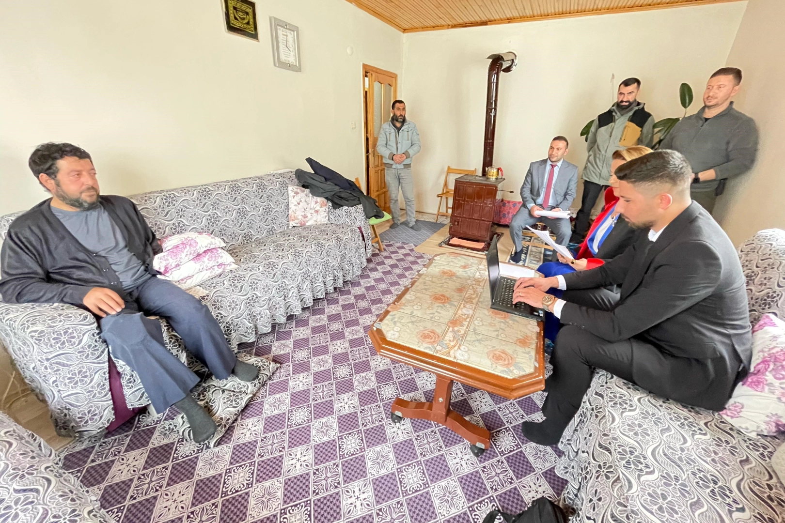 Hınıs Ağır Ceza Mahkemesi Başkanı Mine Cebeci, beraberine zabıt katibi ve mahkeme mübaşirini de alarak, davanın aydınlanması için sol kolu ve bacakları protez olarak hayatını idame ettiren fiziksel engelli tanık Cevdet Işık'ın ikametine gitti. Tanığın yaşadığı evde yapılan duruşmada ilgilinin hasta yatağında beyanı alındı. Verilen hizmetten çok memnun kalan tanık Işık, engelli olması ve sağlık sorunları nedeniyle duruşmaya gidemediği için eve gelen Hınıs Ağır Ceza Mahkemesi Başkanı Mine Cebeci ve beraberindekilere teşekkürlerini iletti. Mahkeme Başkanı da engelli vatandaşa Allah’tan hayırlı şifalar temennisinde bulunarak tamamlanan işlemlerin ardından Hınıs Adliyesine döndü.