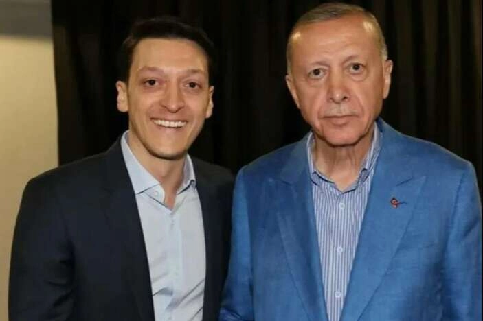 Bir Erdoğan fotoğrafı, Mesut Özil'in kariyerinin sonunun başlangıcı oldu. Şimdi, 5 yıl sonra, eski dünya şampiyonu bu hareketi tekrarladı. Güler yüzlü Özil, ciddi görünen Erdoğan ile el sıkışıyor: 'Her zaman yanındayız Sayın Cumhurbaşkanım'