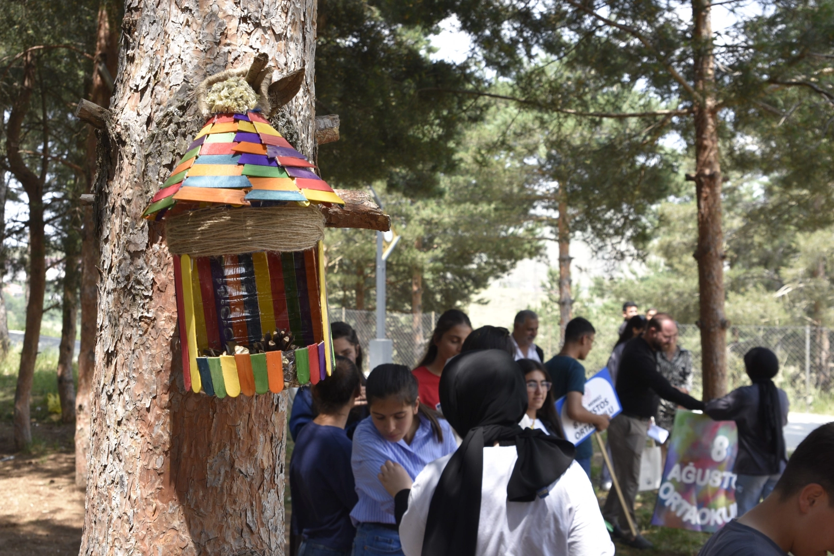 Yaklaşık bir hafta içinde yaptıkları 20 kadar renkli ve sevimli yuvalar, Bitlis Mevlana Millet Bahçesi'ndeki ağaçlara asıldı. Din Kültürü ve Ahlak Bilgisi dersinde gördükleri konudan etkilenen öğrenciler Cumhurbaşkanı Recep Tayyip Erdoğan'ın eşi Emnie Erdoğan'ın himayelerinde yürütülen 'Sıfır Atık Projesi'ne atıf yaparak topladıkları atık malzemelerden kuş yuvaları yaptı. Yuvaları okullarında yapıp, boyayan öğrenciler Bitlis-Mevlana Millet Bahçesindeki ağaçlara astı. Bitlis Belediye Başkanı Nesrullah Tanğlay'ın da katıldığı etkinlikte öğrenciler tarafından yapılan yaklaşık 30 kuş yuvası park içerisindeki ağaçlara asıldı. Öğrencilerle tek tek sohbet eden Bitlis Belediye Başkanı Nesrullah Tanğlay, "8 Ağustos Ortaokulu öğrencileri Emine Erdoğan hanımefendinin himayelerinde yürüyen ‘Sıfır Atık' projesi kapsamında çok güzel bir proje yapmışlar. Geri dönüşüm malzemelerinden bizim millet bahçemize kuş yuvaları yapmışlar. Birbirinden kıymetli ve birbirinden güzel kuş yuvaları yapmışlar. Bu konuda hem gençlerimize teşekkür ediyoruz, hem de bu desteği öğrencilere veren öğretmenlerimize teşekkür ediyorum. İnşallah bunun devamını da getireceğiz.