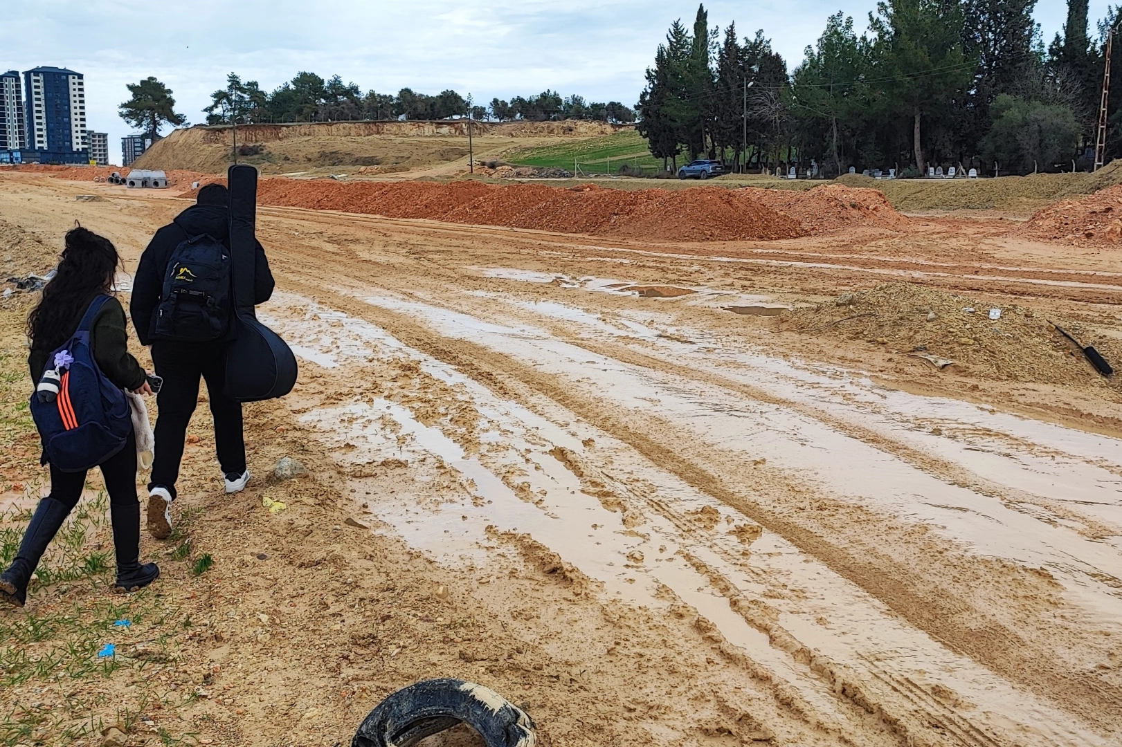 Adana’da 15 yıl önce yapılan Çukurova Güzel Sanatlar Lisesinin yolu bir türlü yapılmayınca öğrenci ve öğretmenler çamur içinde okula gidip gelmek zorunda kaldı.