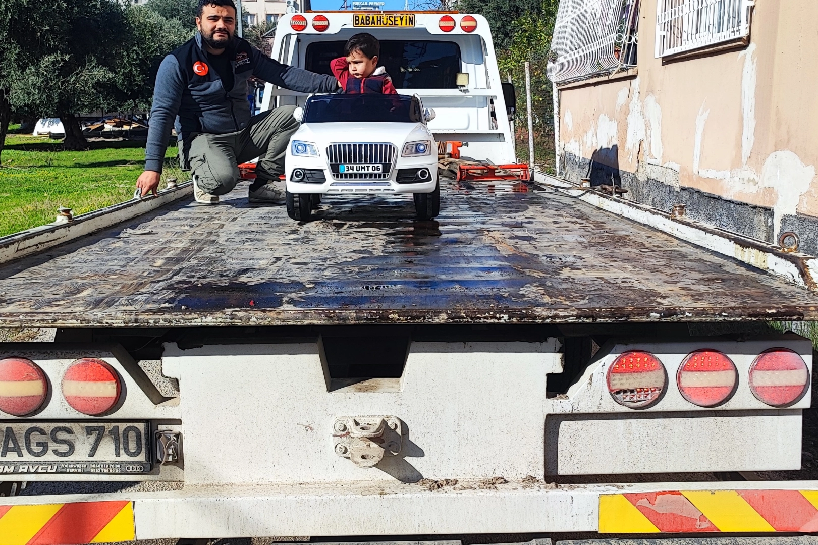 Adana'da araç çekiciliği işi yapan baba, 2 yaşındaki oğlunun doğum gününe şehir dışındaki işi nedeniyle geç kalınca, gönlünü almanın farklı bir yolunu buldu. Baba oğlunun çok istediği akülü oyuncak arabayı çekiciye yükleyip gece yarısı eve getirerek sürpriz yaptı.