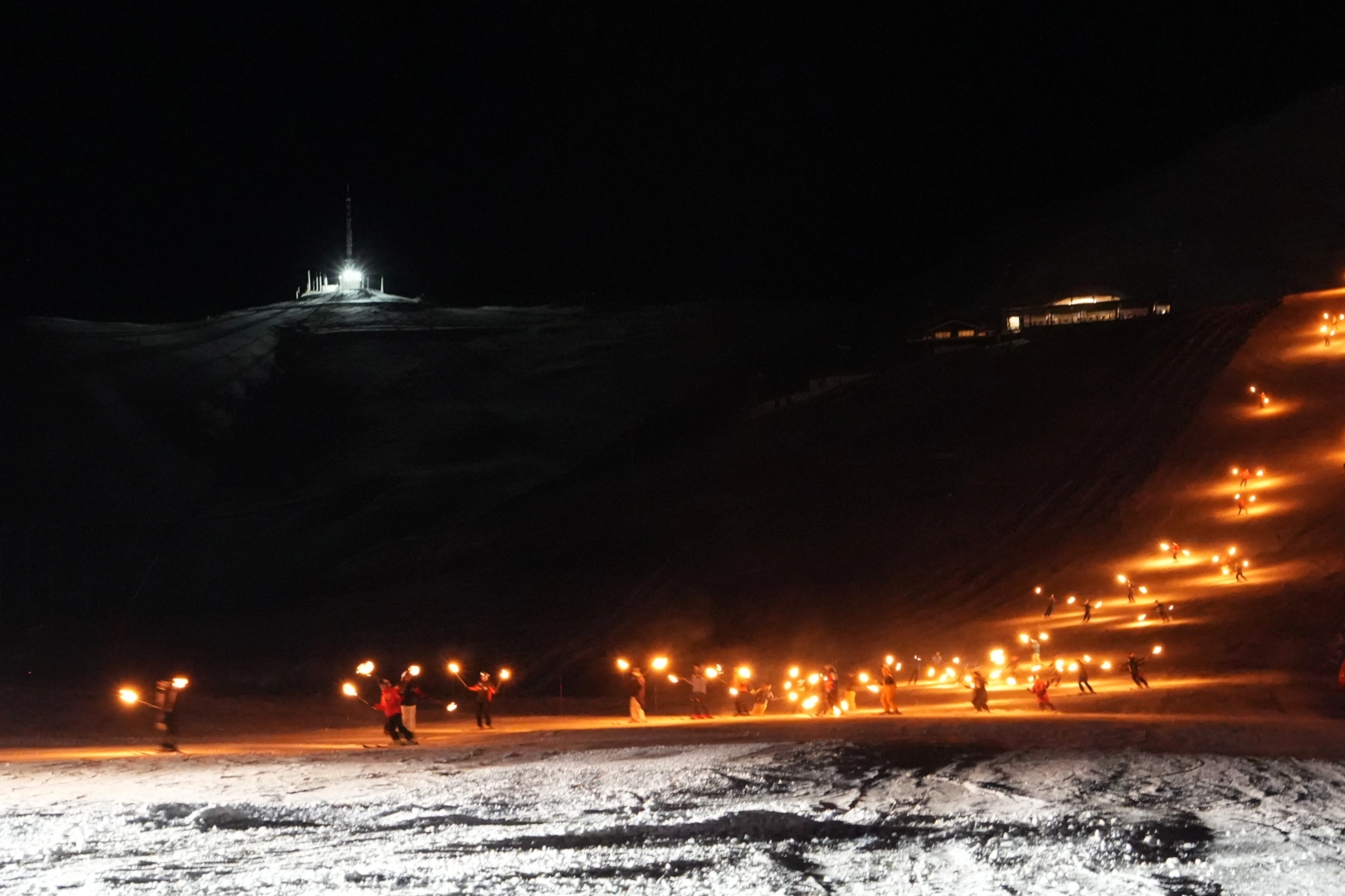 Palandöken Kayak Merkezi'nde yeni sezon açılışı yapıldı. Meşaleli kayak, ledli adamlar, lazer ve kar motoru gösterisi açılışa damga vurdu.
