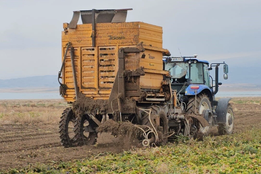 Bitlis'in Adilcevaz ilçesindeki çiftçiler, bölgenin önemli tarımsal ürünlerinden biri olan şeker pancarında söküm çalışmalarını yoğun tempoyla sürdürüyor.