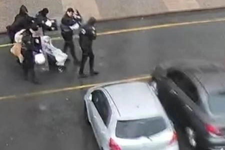 Polisin anne ve bebeğinin etrafında kalkan olduğu anlar kameraya yansıdı.