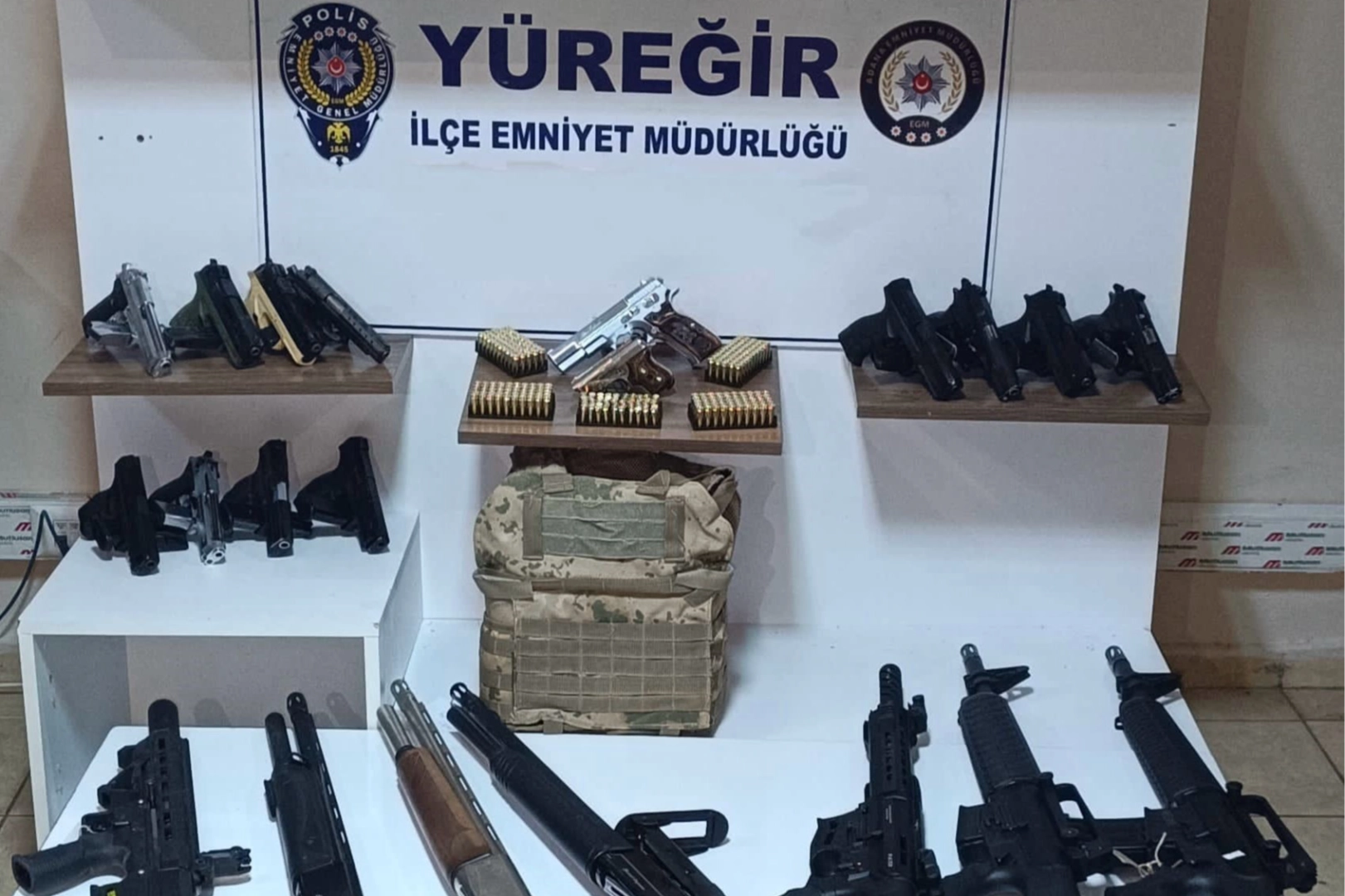 Adana’da Yüreğir polisleri bir hafta boyunca yaptıkları uygulamada 32 ruhsatsız silah ele geçirdi. Adana Emniyet Müdürlüğü Yüreğir İlçe Emniyet Müdürlüğüne bağlı, araştırma, devriye ekipleri ve bekçiler bir hafta boyunca asayiş uygulaması ile suçlulara göz açtırmadı. Yapılan uygulamalar neticesinde, 24 ruhsatsız tabanca, 7 ruhsatsız tüfek, 1 kurusıkı tabana ve 934 tabanca mermisi ile 1 çelik yelek ele geçirdi.