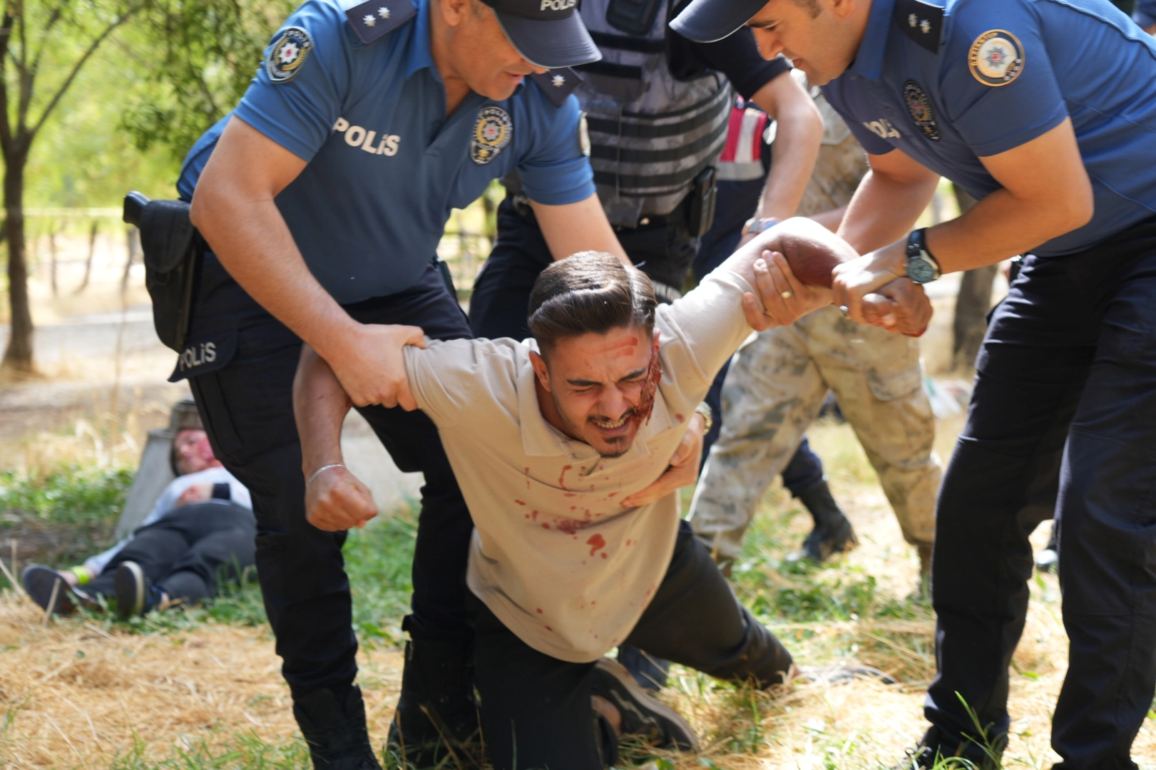 Senaryo gereği ölü ve yaralı yakını rolüne kendini kaptıran kişiler sağlık çalışanlarına ve polis ekiplerine zor anlar yaşattı. Gaziantep İl Sağlık Müdürlüğü'ne bağlı Acil Sağlık Hizmetleri Daire Başkanlığı'nın organizasyonuyla gerçekleşen ve filmleri aratmayan görüntülere sahne olan Ulusal Medikal Kurtarma Ekibi (UMKE), İl Emniyet Müdürlüğü ve İl Jandarma Komutanlığı ekiplerinin ortak tatbikatı, katılımcılardan tam not aldı.