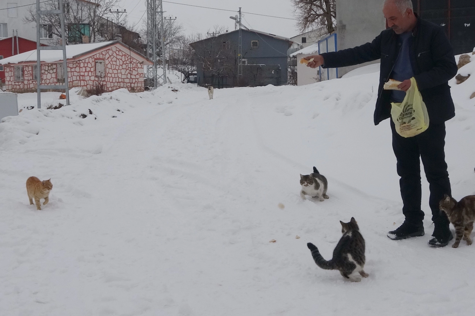 Bahar aylarıyla birlikte Adıyaman, Malatya ve Gaziantep'ten ailelerin gelip çiftçilik yaptığı Adıyaman merkeze bağlı Sarıkaya köyü, ailelerin kentlere dönmesiyle kış aylarında boşalıyor. Sarıkaya Muhtarı Ali Rıza Bildik, yaz kış köyünü terk etmiyor. Eşi ve iki çocuğuyla birlikte kışın köyde yaşayan muhtarı köye bağlayan en önemli şey ise köyün kedi ve köpekleri. Köydeki kedi ve köpekleri soğuk kış günlerinde açlıktan ölmemeleri için kendi elleriyle besliyor. Çevre ilçe ve beldelerdeki fırınlardan bayat ekmekleri toplayan Ali Rıza Bildik, bunlarla hayvanları besliyor. Diğer köylüler de bayat ekmek getirerek muhtara destek oluyor. Kedi ve köpekler, elinde bayat ekmek dolu torbayı görünce muhtar Bildik'in etrafında toplanıyor.