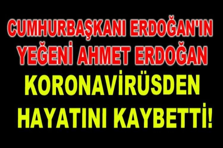 Cumhurbaşkanı Recep Tayyip Erdoğan’ın ağabeyi Hasan Erdoğan’ın Kocaeli’nin Başiskele ilçesinde yaşayan oğlu Ahmet Erdoğan (73), korona virüs sebebi ile geçtiğimiz günlerde tedavi altına alındığı Kocaeli Devlet Hastanesi’nde, akşam saatlerinde hayatını kaybetti. Ahmet Erdoğan’ın cenazesinin memleketi Rize’nin Güneysu ilçesinde toprağa verileceği öğrenildi.