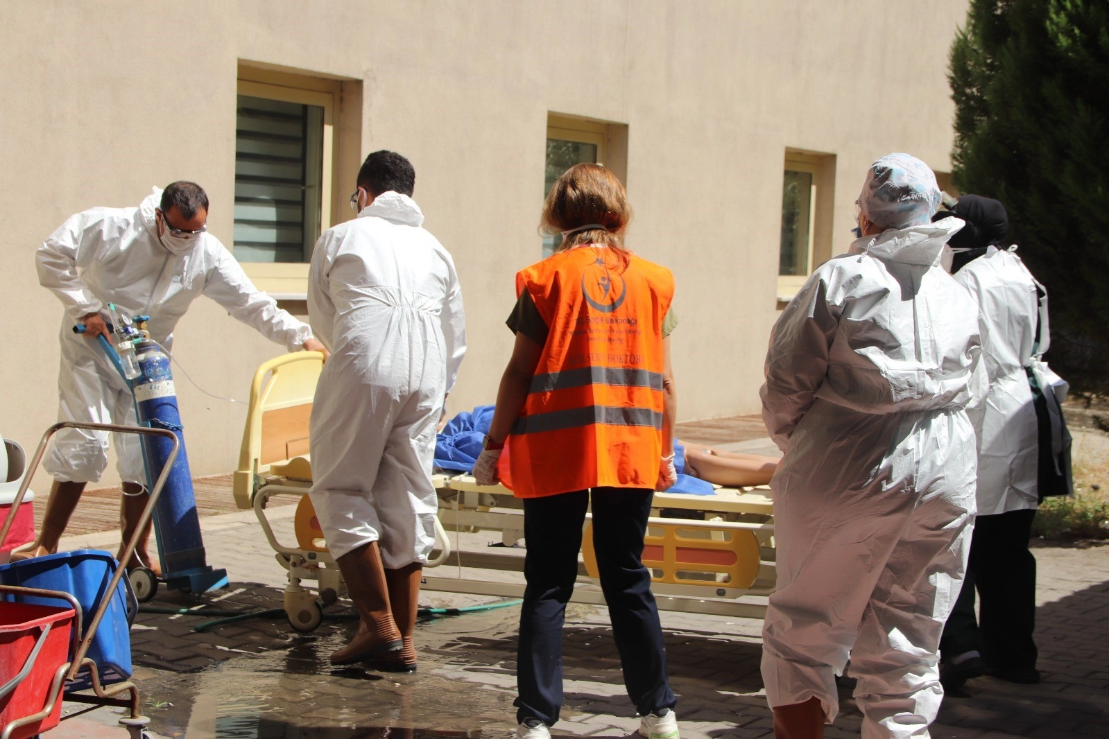 Saat 10.30’da başlayan tatbikat, Manisa İl Sağlık Müdürlüğü’ne bağlı ekiplerin gözetim ve desteğiyle düzenlendi. Senaryosu ve uygulama disipliniyle dikkat çeken tatbikat, hem sağlık personelinin reflekslerini hem de kurumun kriz yönetimi kapasitesini ölçme açısından önemli bir sınav oldu. 'Serada zirai daz sızıntısı' Hazırlanan senaryoya göre, Turgutlu’da faaliyet gösteren bir serada meydana gelen zehirli zirai gaz sızıntısı nedeniyle çok sayıda vatandaş etkilenerek ambulanslarla Turgutlu Devlet Hastanesi Acil Servisi’ne getirildi. Olay yerine ilk ulaşan ekiplerin yönlendirmesiyle başlayan süreçte hastane personeli, afetzedelere yönelik hızlı ve organize bir şekilde triyaj (öncelik belirleme), dekontaminasyon (kimyasal temizlik), tetkik ve tedavi uygulamalarını başarıyla gerçekleştirdi. Tüm birimler koordineli çalıştı Tatbikatta; hastane yönetimi, acil servis ekipleri, hastane sivil savunma birimi, hemşireler, teknisyenler, destek personelleri ve güvenlik görevlileri aktif olarak görev aldı. Ekipler, kriz anlarında olması gereken müdahale yöntemlerini adım adım uygularken, senaryoya uygun şekilde organize olarak zamanla yarıştı. Tatbikat sürecinde özellikle kimyasal madde teması riski taşıyan hasta vakalarında koruyucu ekipman kullanımı, giriş-çıkış kontrolü, izolasyon alanlarının oluşturulması, hasta sevk zincirinin yönetimi gibi kritik adımlar başarıyla simüle edildi. Hazırlık seviyesi test edildi Gerçeği aratmayan tatbikat ile Turgutlu Devlet Hastanesi’nin olası bir kimyasal tehlike, afet veya toplu yaralanma durumuna karşı hazırlık düzeyi test edilmiş oldu. Tatbikatın ardından gerçekleştirilen değerlendirme toplantısında, ekiplerin başarılı bir organizasyon örneği sergilediği ve olası kriz senaryolarına karşı yüksek düzeyde hazırlıklı olduğu vurgulandı. "Bu tatbikatlar hayati öneme sahip" Tatbikata ilişkin açıklamada bulunan hastane yetkilileri, bu tür çalışmaların sağlık personelinin kriz anlarında panik yapmadan hızlı ve etkin müdahale edebilmesi, vatandaşlara doğru ve zamanında sağlık hizmeti sunulabilmesi açısından büyük önem taşıdığına dikkat çekti. Yetkililer, "Amacımız sadece bir tatbikat yapmak değil, her an her koşulda hazır olmaktır. Sağlık çalışanlarımızın bu tür durumlara karşı bilgi, beceri ve reflekslerinin güçlü olması, halk sağlığı açısından hayati öneme sahiptir. Tatbikata katkı sunan tüm personele teşekkür ederiz." ifadelerini kullandı.