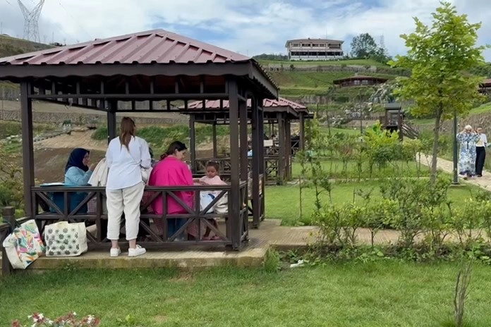 Rize'de yağmurdan kaçmak isteyen vatandaşlar yükseklere çıkarak güzel doğanın keyfini çıkartıyorlar.