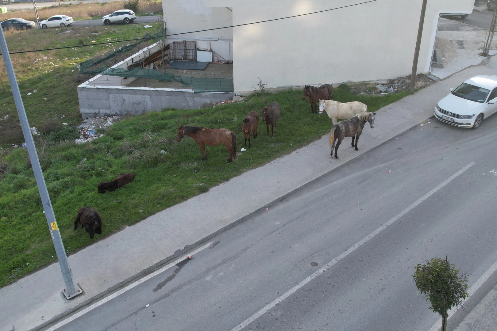 Sokakta başıboş gezen atlar havadan görüntülendi. İstanbul’un Arnavutköy ilçesinde yaz aylarında hurdacılık ve taşıma işlerinde kullanılan atlar, havaların soğumasıyla birlikte sokağa bırakılıyor. Sokağa bırakılan atlar, hem kendi yaşamlarını sürdürmekte zorlanıyor hem de trafik güvenliğini tehlikeye atıyor. İlçenin farklı mahallelerinde caddelerde, boş arazilerde ve zaman zaman araçların arasında koşuşturan atlar, sürücülere zor anlar yaşatıyor.