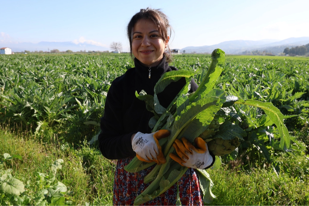 Ailesine ait tarlada enginar üreticiliği yapan Aydın’ın en genç girişimci ve üretici kadınlarından Özge Yüksel, "Sezona bu yıl biraz erken başladık. Havalar geçen seneye göre daha ılık geçti, soğuklar uzun sürmedi. Enginarlarımız ’iyi tarım’ sertifikalı. Diğer yetiştirilen enginarlardan farlı. İçerisinde herhangi bir hormon yok. Bizim sezonumuz çok şükür güzel gidiyor. Hayvan gübresi ile ilerliyoruz. Artık enginar lüks bir ürün olmaya başladı. Fiyatlar biraz pahalı. Toptanda tanesi 20 TL’den başladı daha da artarak devam ediyor. Bunun sofraya ulaşması 40 TL’yi buluyor. Biz en son lokantada enginarı İstanbul’da yedik ve bir tanesi 400 TL fiyat yazılmıştı" ifadelerini kullandı.