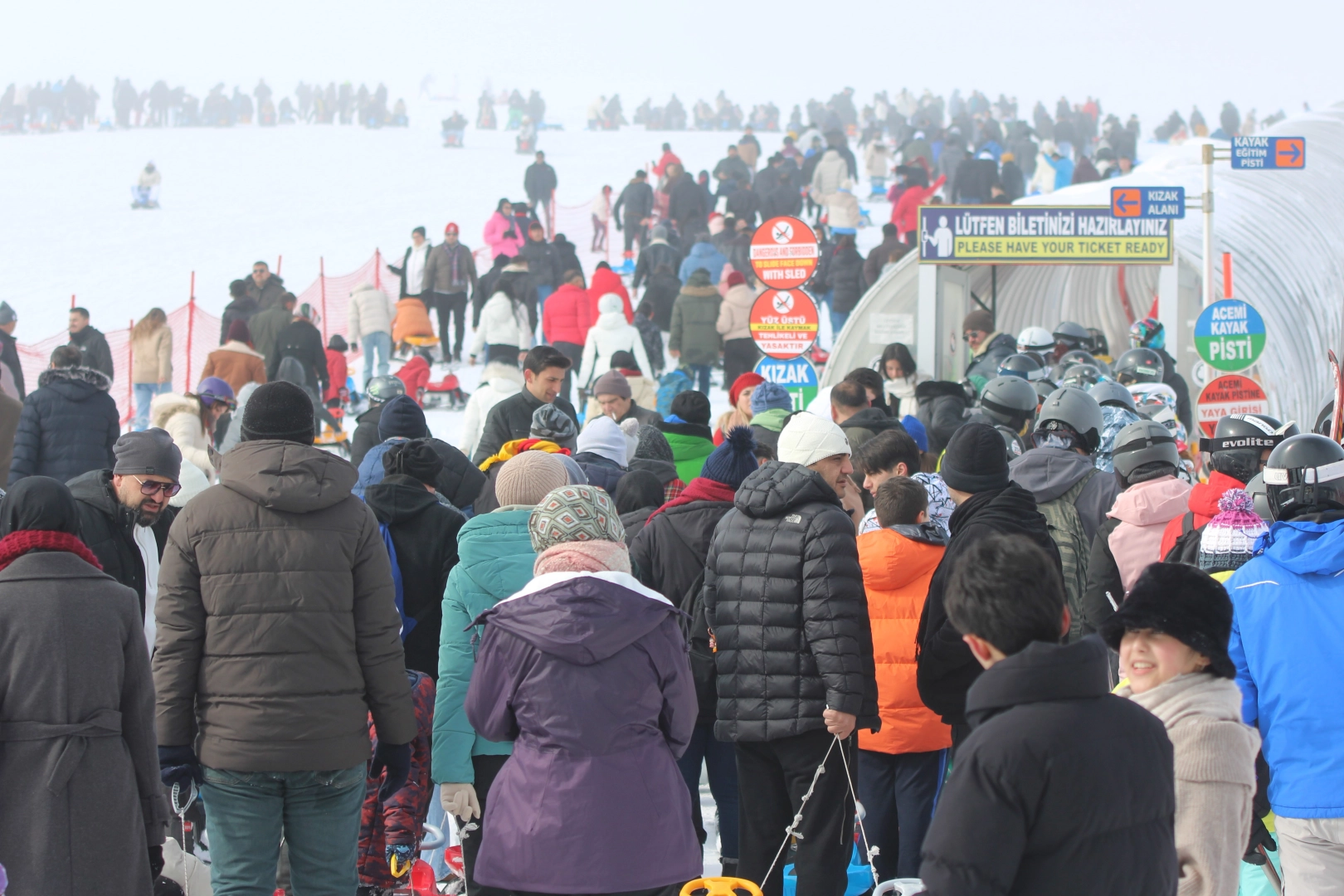 112 kilometrelik pistleriyle Türkiye'nin en uzun kayak pistine sahip Erciyes, yerli ve yabancı misafirlerini ağırlamaya devam ediyor. Hafta sonu güzel havayı fırsat bilen turistler, Erciyes'e akın ederek kayak yapmanın tadını çıkardı. Misafirlerine her zorluğa uygun pistleriyle hizmet veren Erciyes Kayak Merkezi'ne gelen bazı vatandaşlar da türküler eşliğinde halay çekerek hem kendilerine hem de izleyenlere güzel anlar yaşattı.