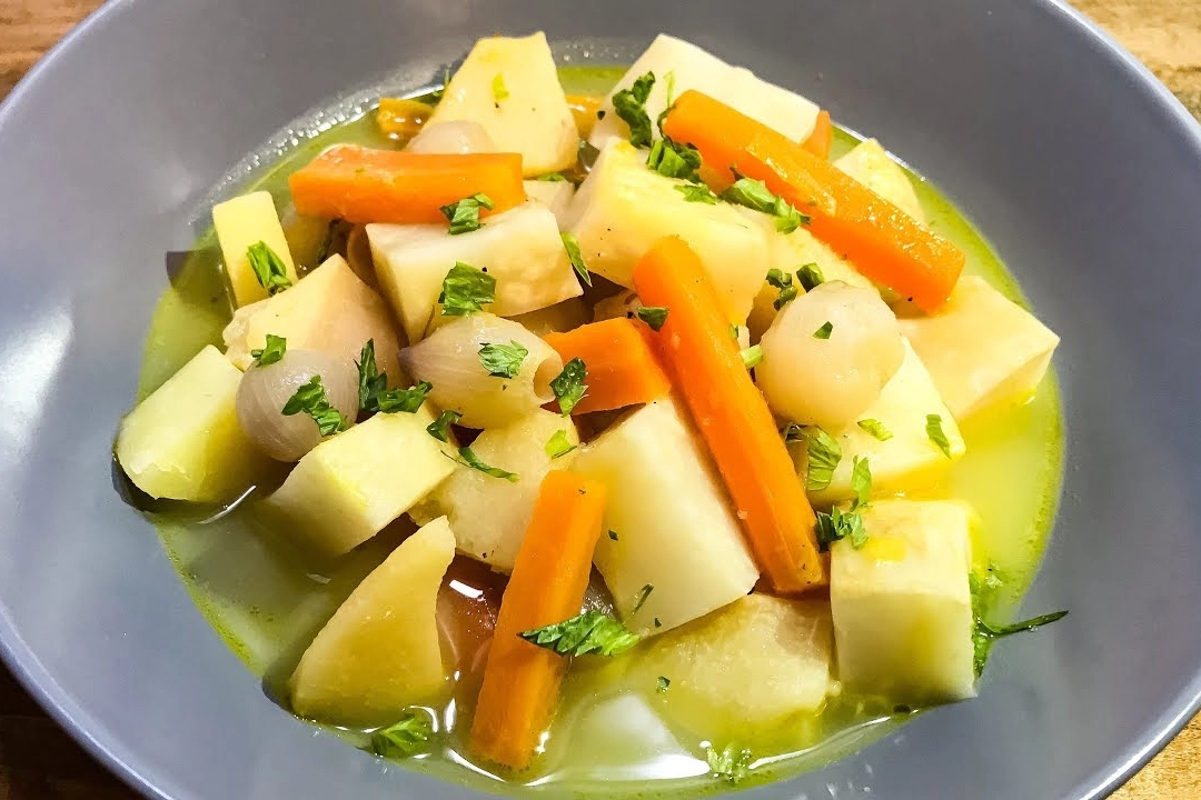 Malzemeler: - 2 adet kereviz - 1 adet soğan - 2 adet havuç - 2 adet patates - 2 diş sarımsak - 1 adet limon - 3 yemek kaşığı zeytinyağı - 1 tatlı kaşığı tuz - 1 çay kaşığı karabiber - 1 çay kaşığı toz şeker - 2 su bardağı su