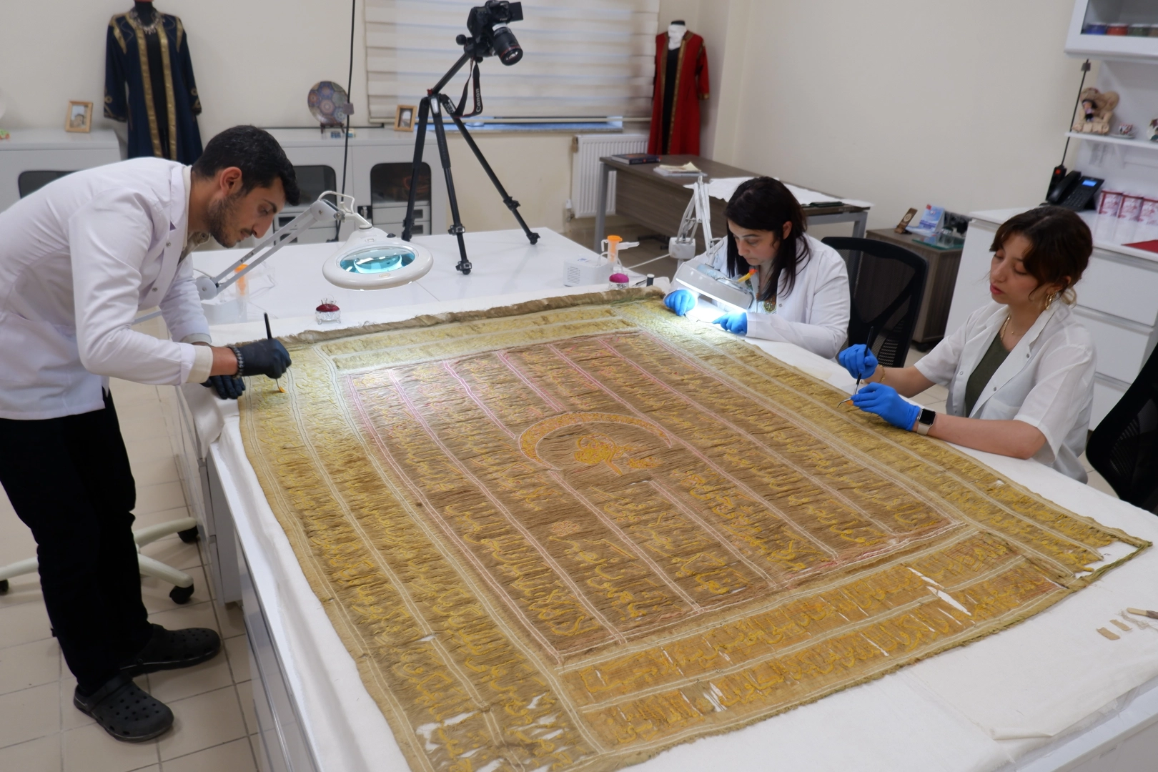 Üzerindeki tuğradan 2'nci Abdülhamid dönemine ait olduğu tespit edilen ve atlas kumaştan yapılan Kırşehir Ahi Sancağı, Erzurum Restorasyon ve Konservasyon Bölge Laboratuvarı'nda restoresi için usta ellere teslim edildi.